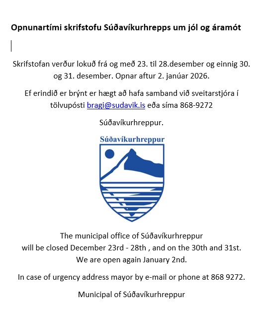 Súðavíkurhreppur - opnunartímar skrifstofu í desember